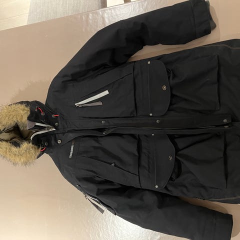 Russeparkas selges. Er påstrykt logo på ryggen, men denne kan kanskje fjernes eller påstrykes ny over den som er der?