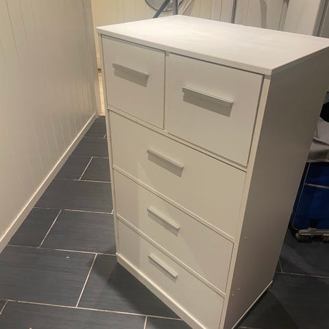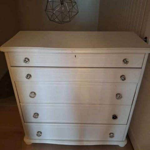 Brukt kommode gies bort, må ha nye knotter/håndtak. Må hentes😊