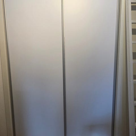 En med speil, en hvit. Ca 2 meter høye, vanlige ikea pax mål. I grei tilstand, men har stått noen uker utendørs under tak pga flytting. Ingen store skader, litt skitne. Skyvedørsbeslag følger delvis med, men det må regnes med at det mangler deler til dette da jeg ikke har helt oversikt over hva som har hørt til hva. Gis bort mot henting.