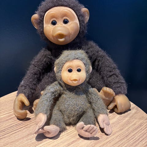 Den i front er en Nici Glubschis ape som heter Hobson. Store glitrende øyne, og stjerne på foten (ikke synlig brukt).