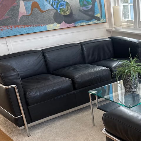 En unik mulighet! Sjelden Le Corbusier Grand Confort Soft 3-seters sofa til salgs – et tidløst designikon. Håndlaget i Italia av Steel Line, med førsteklasses lær og dun fylte puter som gir en utrolig komfort. Den tekniske pusteventilen sørger for ekstra holdbarhet og god ventilasjon. Sofaen er i 100% original stand, knapt brukt, og har mange år med stilfull eleganse og komfort igjen.
