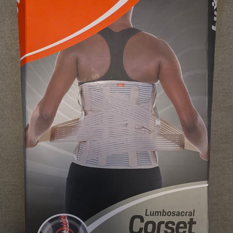 Denne pakken har ligget i skapet i årevis. Trur ingen har brukt den. Vulkan Back 3022 ryggstøtte i neopren, one size (XS–XL). Ryggbeltet er laget i elastisk neoprenmateriale og festes med borrelås for justerbar passform rundt korsryggen. Produktet er beregnet for støtte av korsrygg/lumbalområde ved aktivitet eller i hverdagen. Farge: blå med røde kanter. Kan brukes av både kvinner og menn.