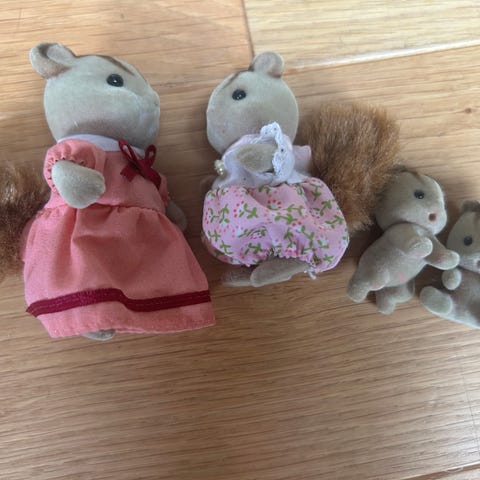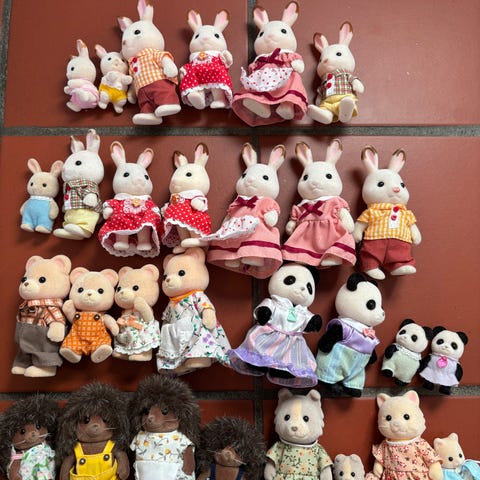 Sylvanian Families figursett med syv kaniner og to bjørner. Settet består av flere kaninfigurer i ulike størrelser, kledd i forskjellige antrekk. Figurene er laget som lekefigurer til barn og kan brukes sammen med andre Sylvanian Families-møbler, hus og tilbehør. Egnet til rollelek og samling for barn som liker Sylvanian Families-universet.