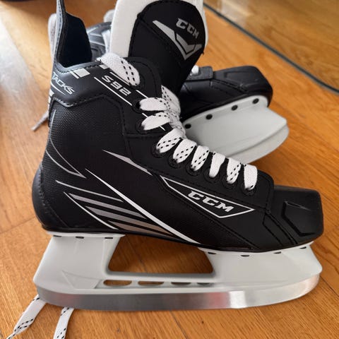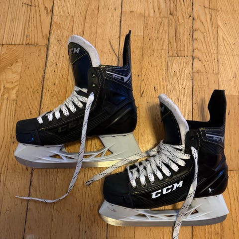 CCM ishockeyskøyter i størrelse EU 42. Skøytene er i svart farge med hvite lisser og hvit innside. De har faste skøyteholder og stålskinne tilpasset ishockeybruk. Passer til bruk på isbaner og ishaller for trening eller fritidsspill i ishockey.