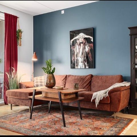 Deilig blå fløyel / velour hjørnesofa