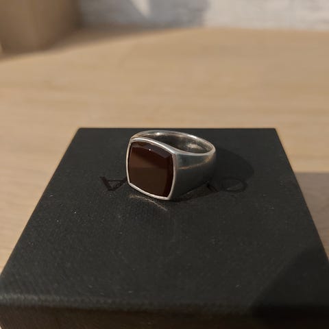 Signetring med karneol selges grunnet lite bruk. Str 64. Ny pris: 3080,-