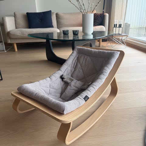 Nydelig vippestol fra Charlie Crane selges. Følger med en helt ubrukt ekstra innlegg i fargen cream. Kjøpt ny av oss, ingen flekker/skader.