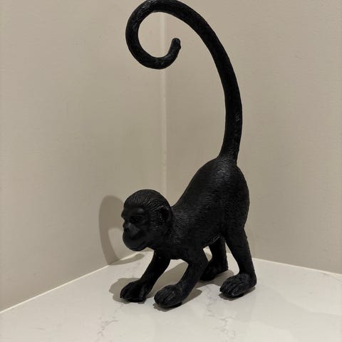 Ape figur til dekor i gullfarge. Selges grunnet flytting.