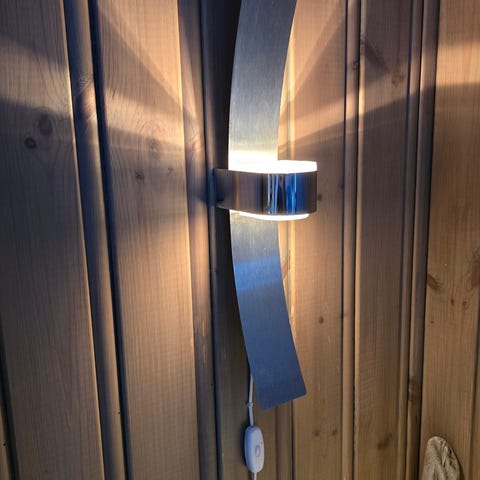 Herstal vegglampe i metall med hvit dobbel kjegleformet skjerm. Lampen har rektangulær bakplate i børstet metall og sentrert feste med kromdetalj. Egner seg som veggbelysning i for eksempel stue, gang eller soverom. . Monteres på vegg, med synlig ledning som vist på bildene.