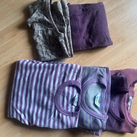 Name it og Joha barneklær i ull for primært størrelse 80, i rosa og lilla nyanser.