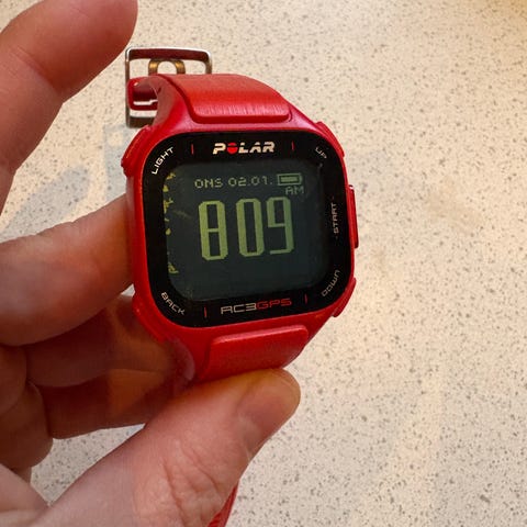 Klokken har ligget i skapet, lenge. Batteri tid er jeg usikker på. Kommet noen merker i display etter lagring. Men fult brukbar.