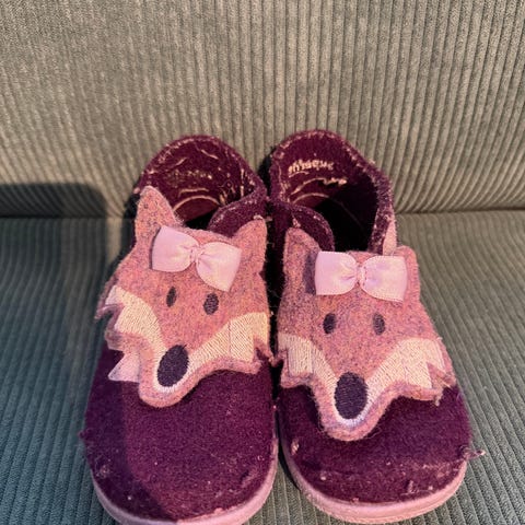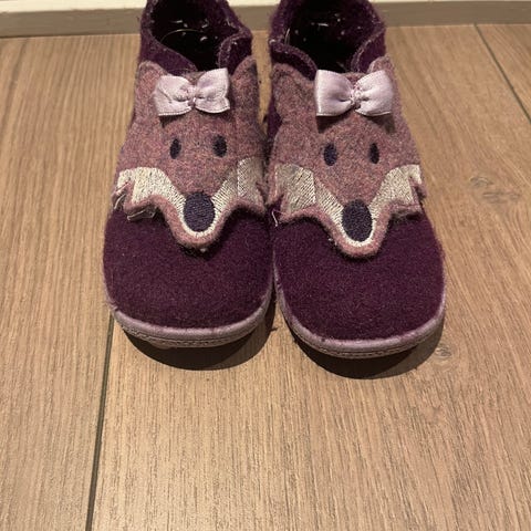 Superfit tøfler i størrelse 20. Tøflene er i en lilla fargetone med lysere rosa detaljer og motiv foran. De har myk overdel i tekstil og fleksibel yttersåle i gummi som gir godt grep på underlaget. Passer som innesko eller tøfler i barnehage og hjemme.