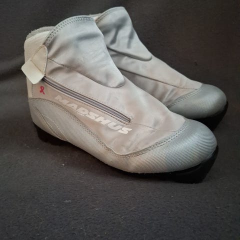 Madshus Hyper langrennssko i svart med røde detaljer. Str 37. Skoene har glidelås i front som dekker lisser for ekstra beskyttelse mot snø og fukt. Overdelen er polstret for bedre komfort og støtte rundt ankelen. Sålen er tilpasset langrennsbindinger (klassisk system, spesifikk bindingstype ikke oppgitt). Egnet til bruk på langrennsturer på preparerte løyper.