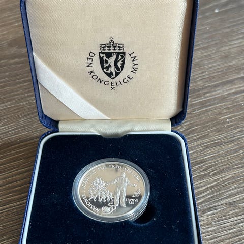 Norges Bank Frigjøringsmynten 50 kr minnemynt i originalt etui.