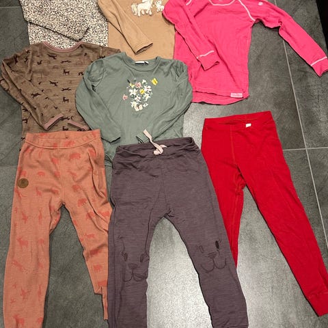Selger en ullpakke med 5 overdeler og 5 underdeler.