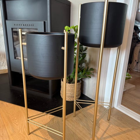 Pidestall til blomster/planter. Svart metall med plass til 3 potter.