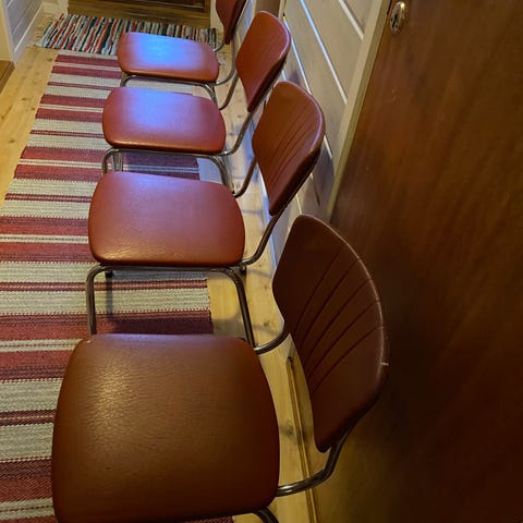 ⚡️4stk Retro/Vintage rørstoler, tre i brunferge og en i svart. Litt synligt bruk, men masse liv igjen:))