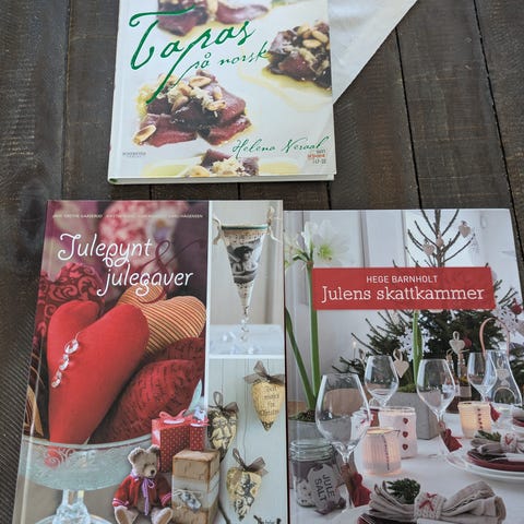 Bøker til inspirasjon og glede med mange fine oppskrifter innen mat og strikk. Bøkene er som nye.