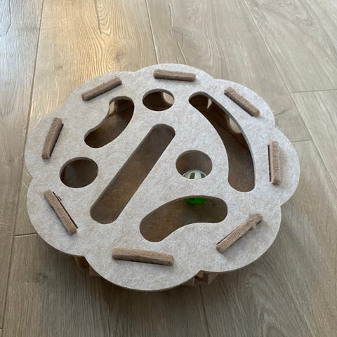 Dekorativt og spennende teppe for katt. Her kan det gjemmes godbiter og katten må snuse seg frem og bruke kløkt for å få frem godbitene. Så er det også et loddent « fluffy» teppe katten kan kose seg i