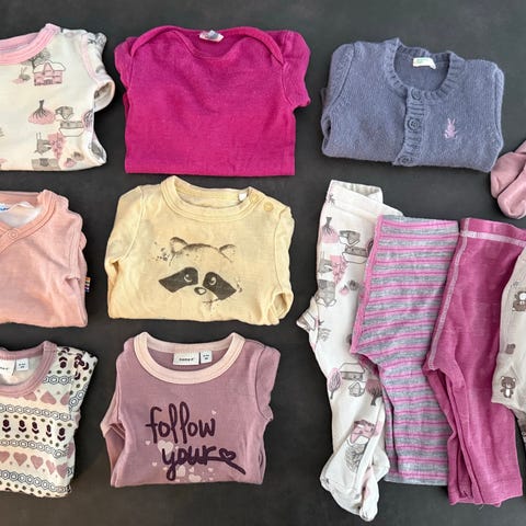 Pakke med 11 bodyer i ull. Noe mer brukt enn annet, og det forekommer noe nupper og svak misfarging på et par plagg, men har ikke funnet noen skader.