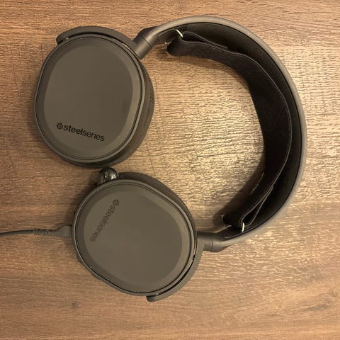 Steelseries gaming headset med justerbar hodebøyle og innebygd mikrofon.