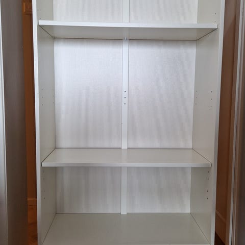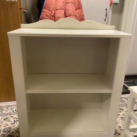 IKEA bokhylle i hvit utførelse. Hyllen har flere faste hyller og er egnet til oppbevaring av bøker, leker eller annet utstyr på barnerom eller i andre rom. Overflate i lys, nøytral farge som passer inn i de fleste innredningsstiler.