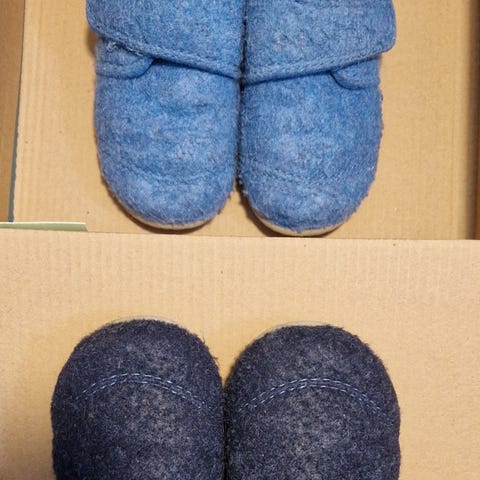 To par tøfler selges samlet eller hver for seg. 50kr per par, 75kr samlet. Nuppete, men hele og med mye bruk igjen