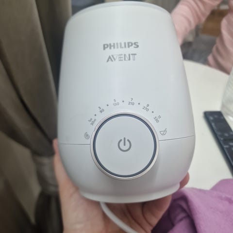 Philips Avent flaskevarmer i hvit farge. Enheten har dreiehjul med ulike innstillinger for oppvarming av tåteflasker og eventuelt babymat. Tilkobles strøm med ledning. Egnet til bruk på kjøkkenbenk eller annet stabilt underlag ved oppvarming av mat og drikke til baby.