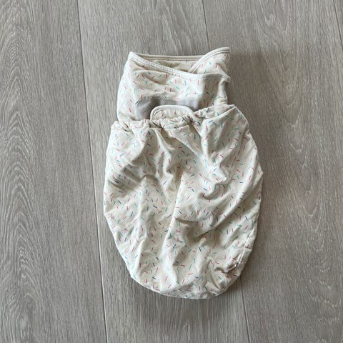 Selger 2 stk pent brukte svøpeposer til nyfødt fra Ergobaby med sauemønster. Tog 0,5. Lappen er klippet ut av den ene. Perfekt å ha to stk til når den ene er i vask eller om det skjer et uhell.