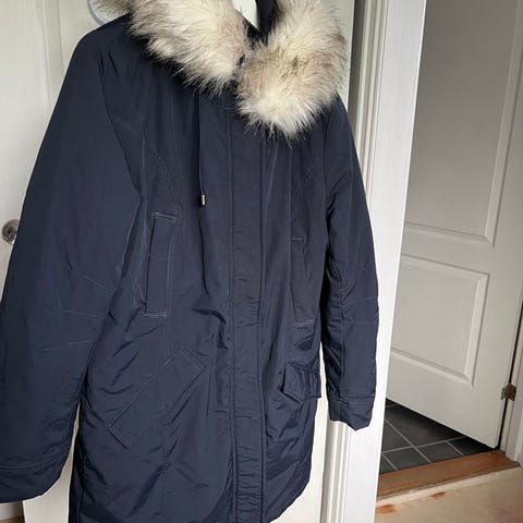 Jean Paul Blast parkas for dame i størrelse S. Jakken er blå og laget i polyester. Modellen har hette med avtagbar fuskepelskant, gjennomgående glidelås med klaff, samt lommer foran. Parkasen har lengre passform som dekker ned over hofter og lår.