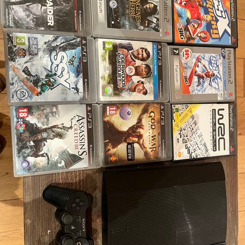 Playstation 3 slim med håndkontroll, ledninger og spill selges. Veldig lite brukt. Kan sendes.