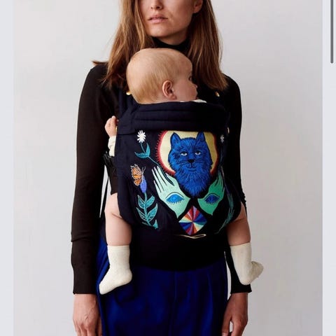 Avtakbart, trikotfôret babypanel med trukket elastikk overst og nederst.