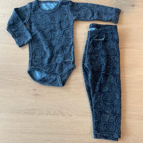 Devold body og bukse i størrelse 62. Brukt av 2 barn og kjøpt nytt av meg.