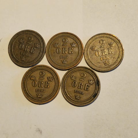 Selger en større samlelott med 23 stk svenske 2 öre fra perioden 1898–1926.