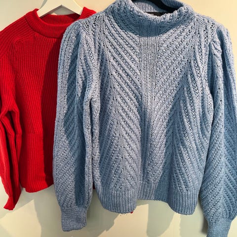 En Pull&Bear og en bikbok genser. Kan se ut som den ene har litt nupper, og selges derfor rimelig.