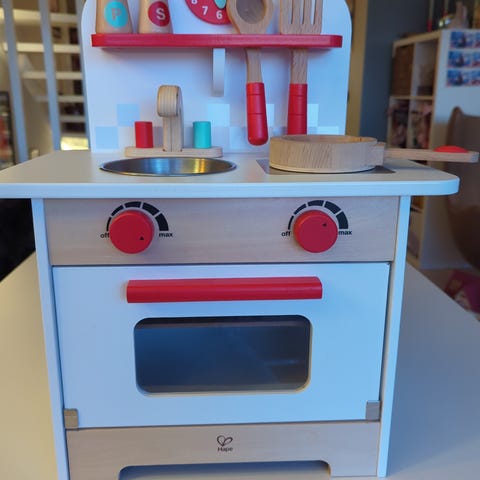 Pent brukt lekekjøkken med utstyr.