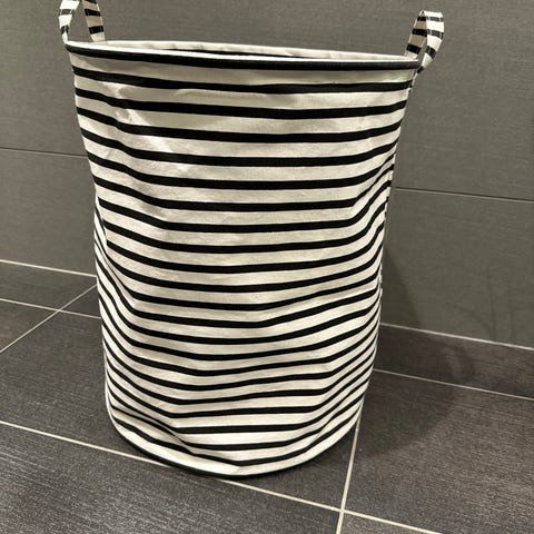 Skittentøyskurv fra House Doctor stripete hvit/svart. Kurven er sammenleggbar og har bærehåndtak øverst for enkel flytting. Egner seg til oppbevaring av skittentøy eller som generell oppbevaringspose for tekstiler og lignende☺️