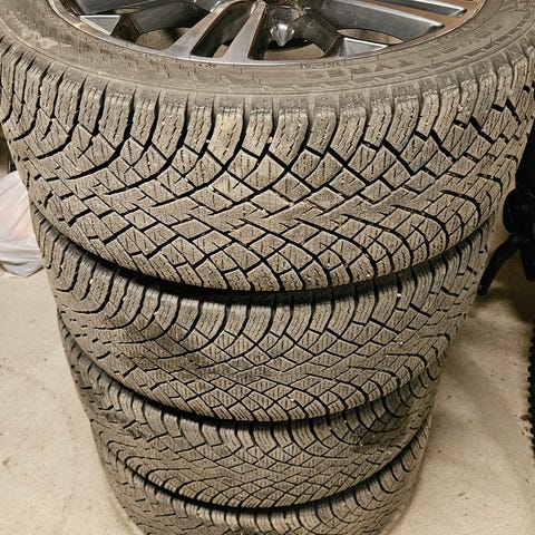 Bilen er vraket og trenger ikke disse lenger men er jo greit med mønster igjen. Felger er i helt ok stand.