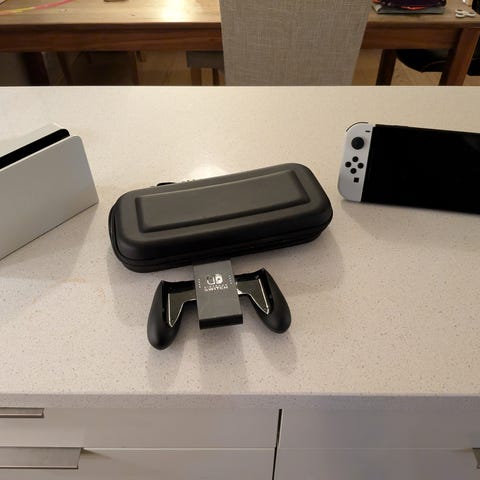 Det følger med original ROG bag, ROG Gaming Charger dock lader, samt generisk stand/dock. Beskyttelsesglass fra dbrand er montert, og det følger med 1x reserveglass om uhellet skulle være ute.