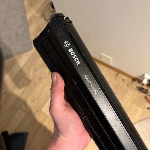 Bosch PowerTube 500 elsykkelbatteri med kapasitet på 500 Wh. Batteriet er beregnet for integrert montering i rammen på elsykler som er kompatible med Bosch PowerTube-systemet. Farge svart. Kontakter og festepunkter vises på bildene for å hjelpe med å vurdere kompatibilitet mot aktuell elsykkelmodell. Egnet som erstatningsbatteri eller ekstra batteri til elsykkel med Bosch drivsystem som støtter PowerTube 500.