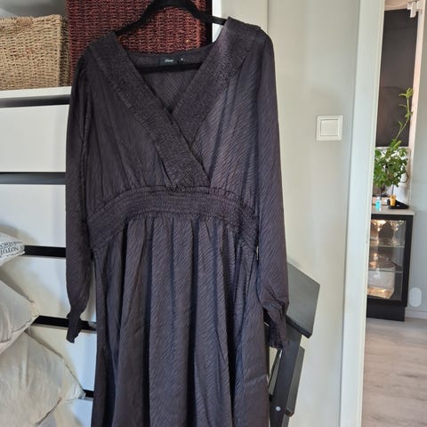 Zizzi hverdagskjole for dame i størrelse M. Kjolen er blå og strikket i akrylblanding. Den har rund hals, lange ermer og ribbestruktur i stoffet. Lengden går omtrent til kneet, med små splitter i sidene nederst. Passer som en enkel og komfortabel hverdagskjole i kjøligere vær.