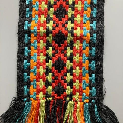 norsk - bånd - duk - løper - broderi - håndbrodert - håndarbeid - husflid - naturmaterial - vintage - retro - modern - rød - grønn - svart - hvit - tekstilkunst - folkekunst - kunsthåndverk