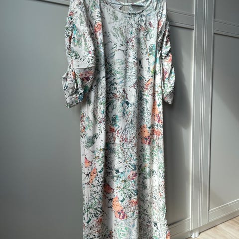 Second Female kjole størrelse L selges da den dessverre ble litt for liten. Vil si den er er L, litt trang i brystparti. Helt ny med lapp på, kjøpt på salg i 2025 for 600,- (pris ny 1899,-). Ytterstoffet er i linblanding (54 % lin og 46 % viskose), med fôr i 100 % viskose. Veldig fin og behagelig kjole.