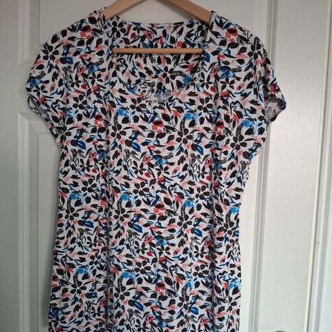 Topp med mønster/print i blått/brunt str L