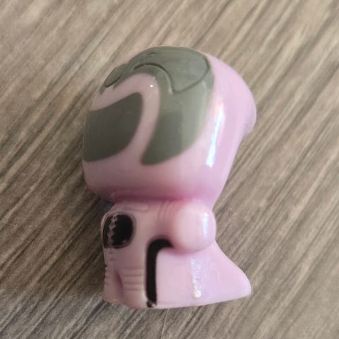 Denne lille grønne figuren er Ojaru (også kjent som Plusha), en samlefigur fra leketøysserien Gogo's Crazy Bones.