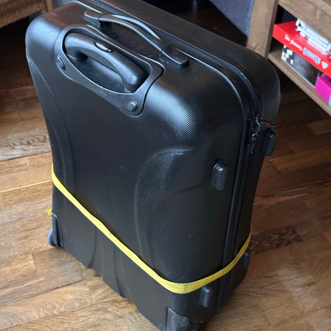 Stor Samsonite koffert på 4 hjul, nettopp byttet 2 av hjulene så de er helt nye. Man får bestilt hjul eller andre reservedeler gratis hos Samsonite. Trekket bør vaskes pga flekk, se bilde.