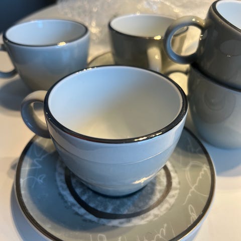 Nag på en kopp, en skål og sukkerskål