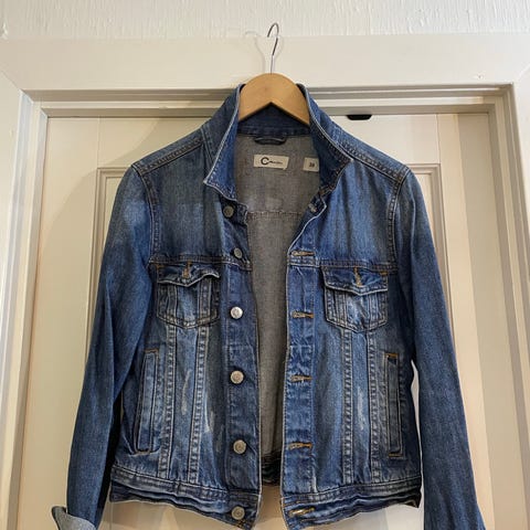 Cubus denimjakke for dame i størrelse 38. Jakken er i blå denim med vasket effekt og har klassisk krage, knappelukking foran og brystlommer med klaff. Ermene avsluttes med mansjetter med knapper, og jakken har justerbare hemper nederst bak. Passer som lett ytterjakke eller som lag over andre plagg.