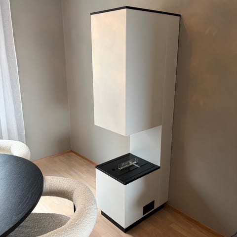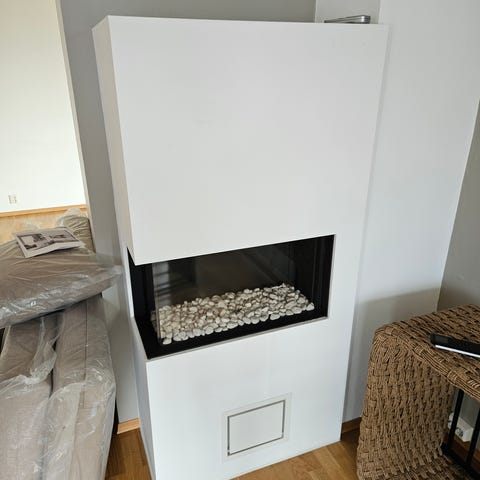 Lite brukt peis fra Tenderflame. Varmeeffekt på 2400 W, sammenlignbart med to panelovner. To flasker med tenderfuel følger med. Nypris 14 990,-