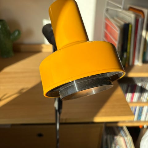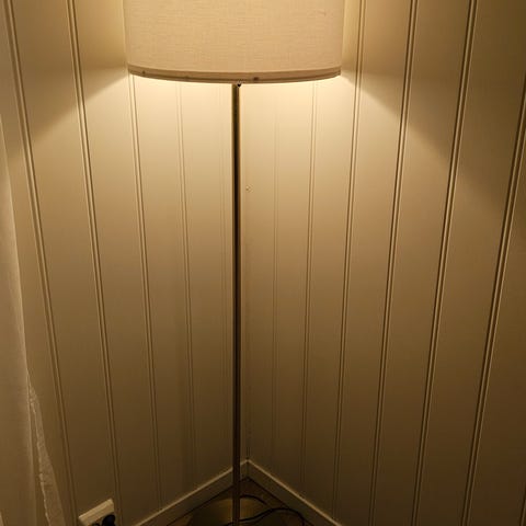 Stålampe i messing. Skjermen er litt skadet på den ene siden. Ellers veldig pen. Må hentes.
